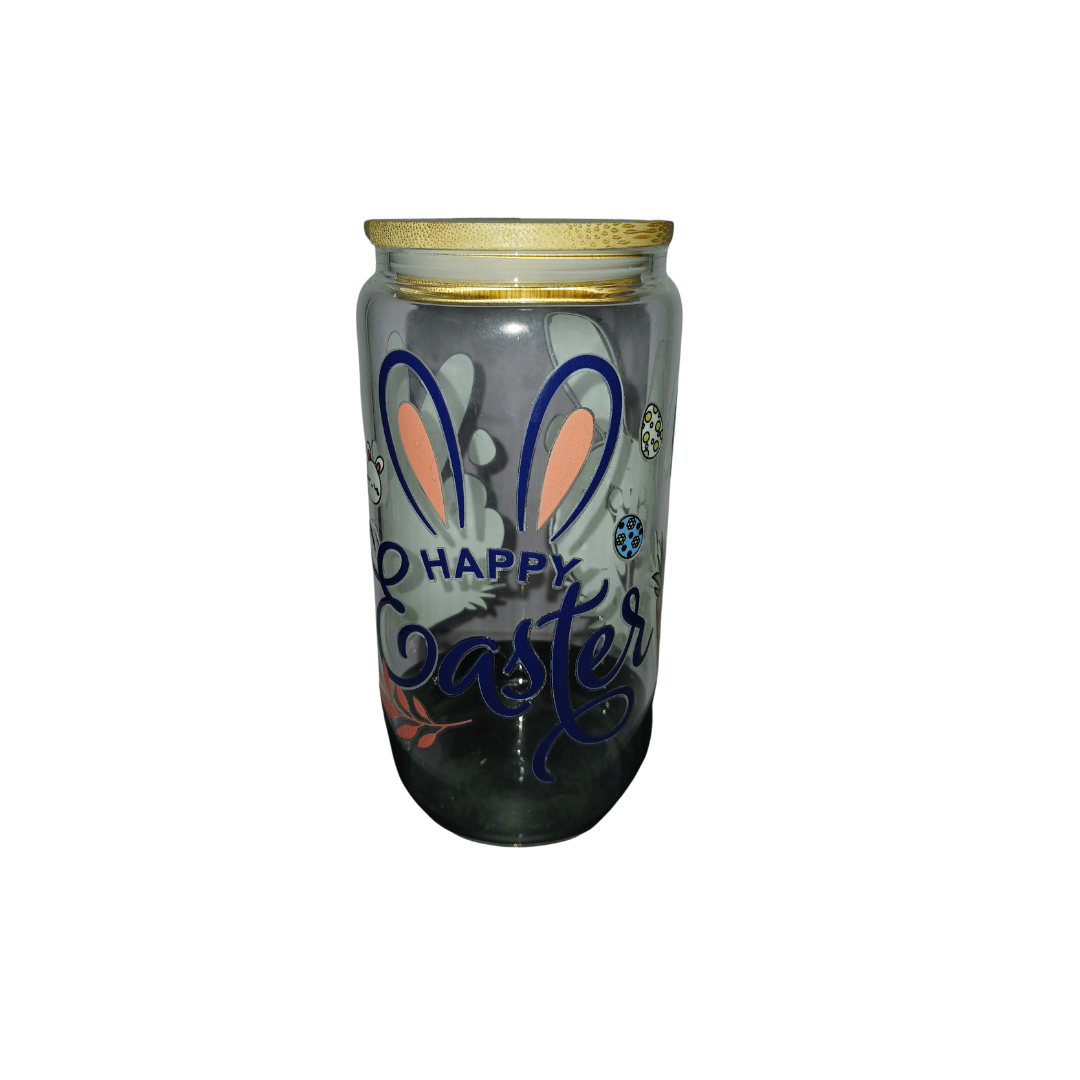 Enjoy this glass cup not only at Easter but year round!. This colorful and fun glass cup comes with a lid and straw. It is perfect for your iced coffee, Frappuccino, or iced drink.